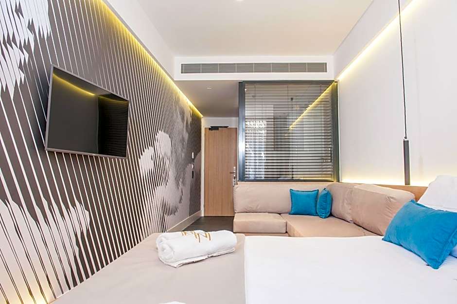 Fitted with handcrafted furnishings, vivid colors and bold interior design, this family apartment has a bedroom with king-size bed, a seating area with 2 sofa beds and a modern bathroom with rain shower and organic toiletries.